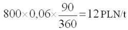 Obecna cena pszenicy wynosi 800 PLN/t. Stopa procentowa wolna od ryzyka wynosi 6%. Koszt finansowania dla kontraktu terminowego wygasającego za 3 miesiące wynosi: