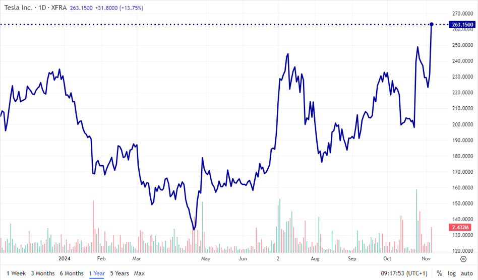 Inwestorzy stawiają na Teslę, tak samo jak jej właściciel postawił na Donalda Trumpa. Przewidują, że poparcie udzielone przez Elona Muska kandydatowi Republikanów zaprocentuje rządowymi kontraktami. Mówi się również, że miliarder obejmie ważne stanowisko w przyszłej administracji.