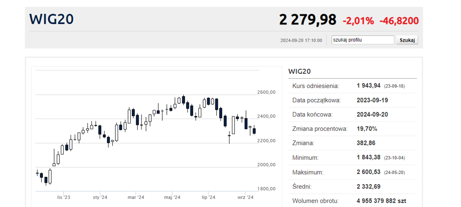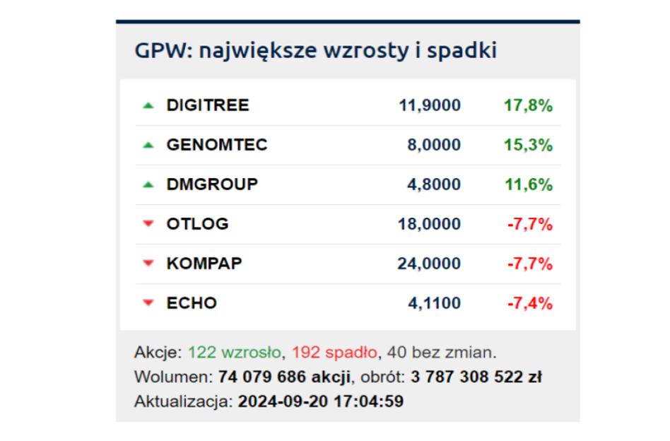 Ostatecznie WIG20 spadł o 2,01 proc., WIG jest na 81 759,71 pkt po spadku o 1,74 proc. Z kolei mWIG40 zameldował się na 6 087,34 pkt. oddając na koniec sesji o 1,27 proc. sWIG80 stracił 1,11 proc. i jest na 23943,61 pkt. Obroty wyniosły 3,78 mld zł na szerokim rynku, z czego 3,47 mld dotyczyło spółek z WIG20.