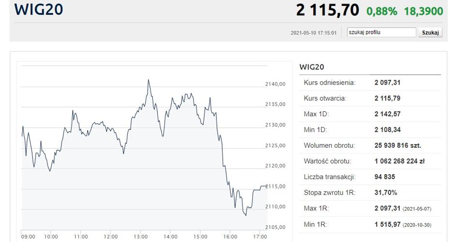 | WIG 20 | Polska | 2115,70 | 0,88 | 3,83 | 7,12 | 31,70 | 6,64 |
