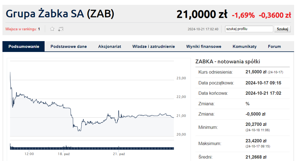 | Żabka | 17.10.2024 | 6,45 | 0,0% |