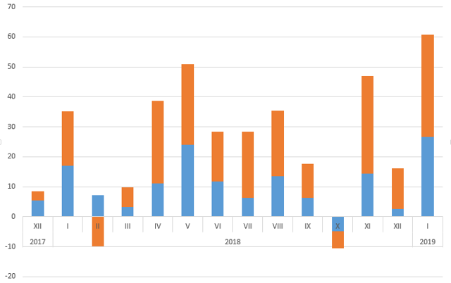 Stosunkowo niskie wyceny i pozytywny klimat zachęciły "zagranicę" do zwiększenia zaangażowania w chińskie akcje. W styczniu zagraniczni inwestorzy nabyli za pośrednictwem giełdy w Hongkongu akcje notowane w Szanghaju i Shenzhen za 269,4 mld juanów, a sprzedali - za 208,7 mld juanów, zwiększając swoje zaangażowanie o rekordowe 60,7 mld juanów, czyli równowartość ok. 9 mld dol. - wynika z danych udostępnionych przez giełdę w Hongkongu.