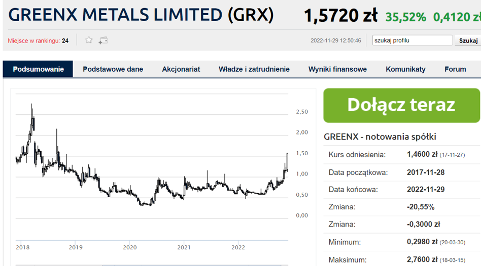 Kurs GreenX Metals notuje gigantyczne wzrosty na GPW po nowej informacji dotyczącej postępowania arbitrażowego przeciwko w Polsce, którego stawką jest miliardowe odszkodowanie na rzecz spółki.