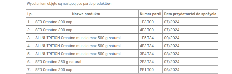 „Przeprowadzone przez Sanepid badania laboratoryjne potwierdziły jednak, że w kilku partiach naszych kreatyn przekroczone zostały normy metali ciężkich (rtęć) dopuszczalne dla suplementów diety” – czytamy oświadczenie spółki SFD, które opublikowała 7 września.