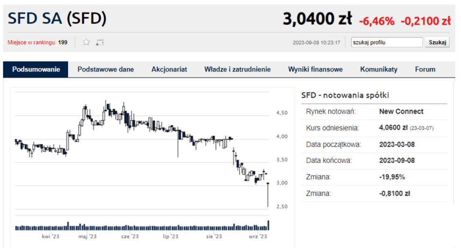 Informacja zaczęła zdobywać coraz większe zasięgi w mediach społecznościowych i portalach takich jak wykop.pl, ale jeszcze w czwartek przeszła niezauważona przez inwestorów. SFD to spółka notowana na giełdzie NewConnect, której kurs poprzedniego dnia co prawda spadł, ale tylko o 1,5 proc. - nie objawiając paniki związanej z kreatynowym problemem.