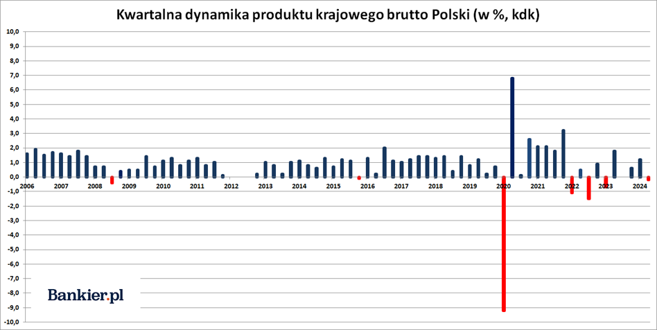 Poprzedni kwartał przyniósł zaskakujący spadek produktu krajowego brutto Polski – wynika ze wstępnych szacunków Głównego Urzędu Statystycznego. Ekonomiści spodziewali się słabych danych, ale nie aż tak słabych.
