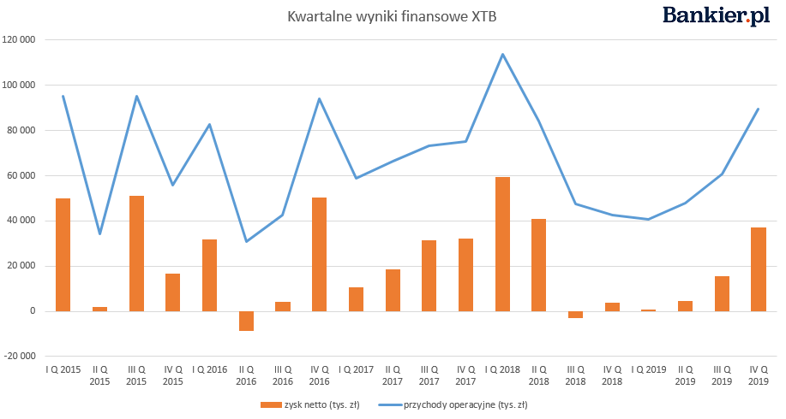 Jeszcze w IV kwartale 2018 roku XTB raportowało ujemne przychody operacyjne z rynku polskiego w wysokości -9,7 mln zł. "Ujemne przychody w IV kwartale 2018 r. z rynku polskiego to wypadkowa kilku czynników, tj. dodatnich przychodów ze spreadów i innych opłat pobieranych od klientów oraz straty z tytułu ponoszonego ryzyka rynkowego wynikającego z działalności Grupy w modelu market making" - wyjaśnia przedstawiciel XTB.