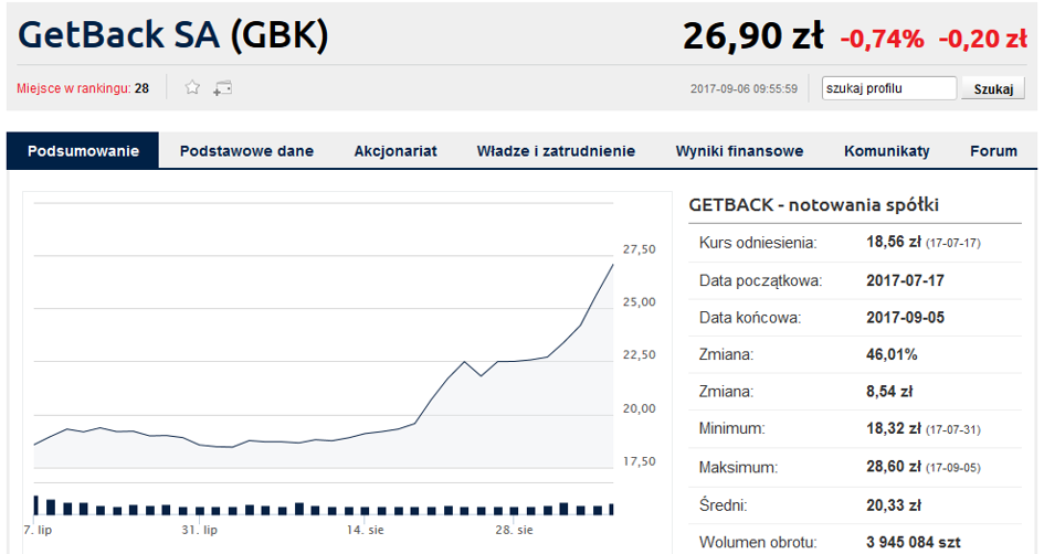 To wszystko sprawia, że wciąż zdecydowany branży windykacyjnej z GPW od momentu debiutu na w maju 2011 r. wzrósł już ponad 8-krotnie, a kurs cały czas krąży wokół historycznego maksimum, które zostało ustanowione zaledwie miesiąc temu.