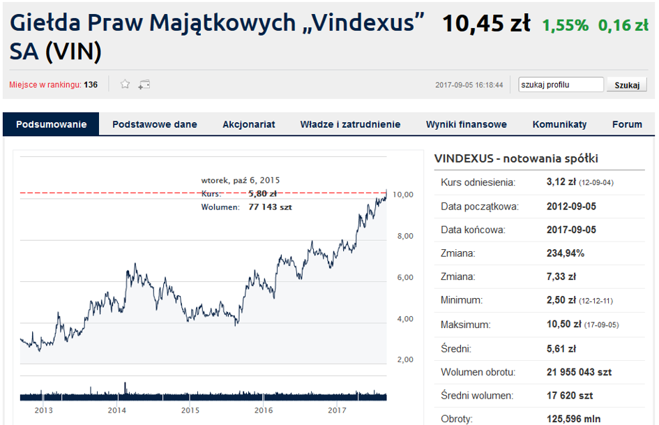 Spośród mniejszych spółek z branży wartych uwagi należy wymienić także Vindexus. W ciągu niecałych 5 lat jego akcje zdrożały bowiem prawie czterokrotnie. Nic dziwnego, skoro przychody netto ze sprzedaży wzrosły w tym okresie z 31,8 mln zł do aż 58 mln zł w zeszłym roku, a zysk się niemal podwoił (z 11,5 mln zł do 20,7 mln zł).