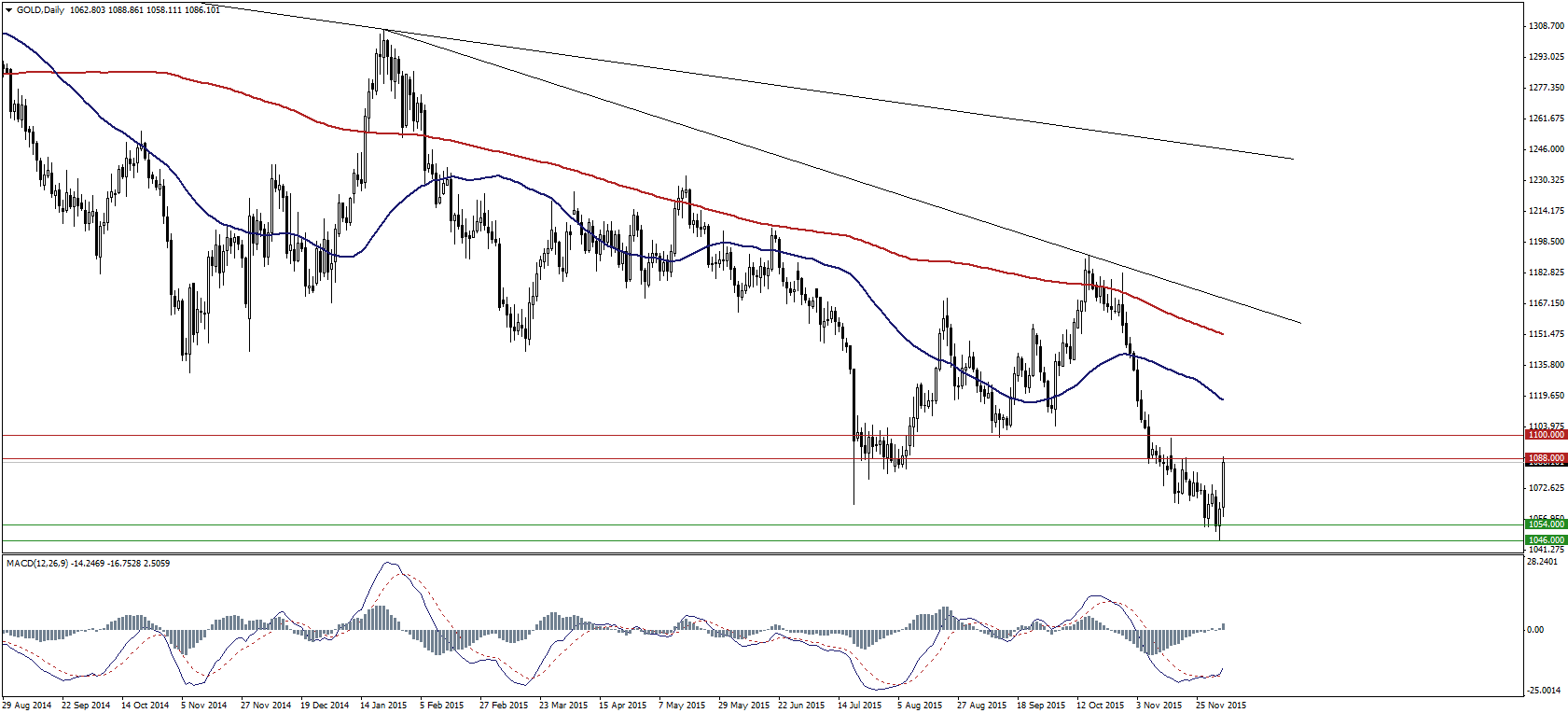 Potężne odbicie oglądamy dzisiaj na rynku złota. Uncja kruszcu podrożała już o prawie 24 dolary i dotarła do oporu 1088 USD negując spadki z ostatnich czterech tygodni. Najlepszym, jeśli nie jedynym wytłumaczeniem tej korekty jest słabnący (mimo lepszych od prognoz odczytów z rynku pracy) dolar amerykański. Jeżeli bykom uda się przełamać poziom 1088 USD, pojawi się możliwość ataku na okrągłe 1100 USD. Ta ewentualność będzie mogła wystąpić jednak pewnie dopiero po weekendzie. Wiele zależeć będzie od kondycji amerykańskiej waluty, która wyjątkowo mocno „oberwała" na koniec tygodnia, mimo jastrzębiego nastawienia Rezerwy Federalnej i gołębiej polityki Europejskiego Banku Centralnego.