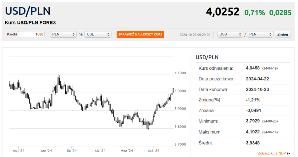 Wyraźnie drożał także frank szwajcarski, którego kurs doszedł w środę o 9.45 do 4,6385 zł i był najwyżej od 6 sierpnia i w wyraźnym trendzie wzrostowym. Od końca września kurs CHF/PLN podrożał o blisko 10 groszy. Funt brytyjski był najdroższy od ponad roku i kosztował w środę rano nawet ponad 5,22 zł i trzeba było za niego zapłacić nawet o 5 groszy więcej niż dzień wcześniej. Kurs GBP/PLN ostatni raz wyżej był w pierwszej połowie października 2023 r.