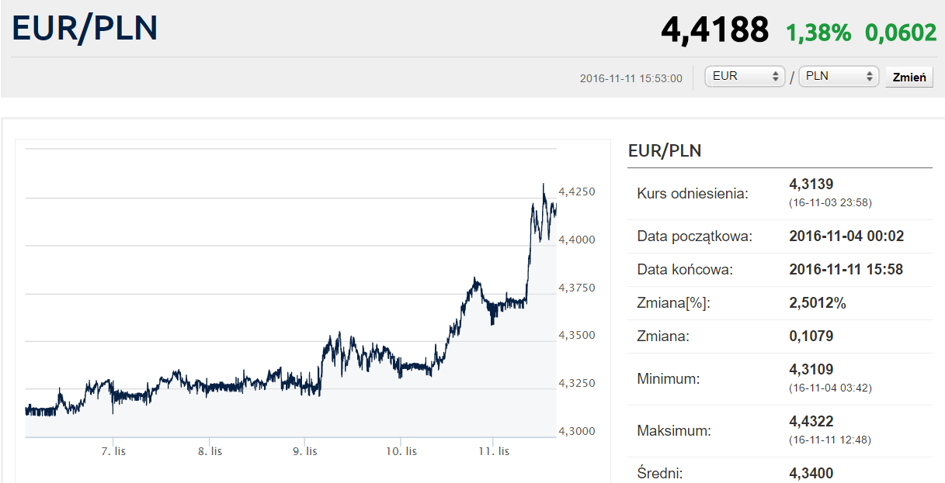 Choć piątek jest dla Polaków dniem wolnym od pracy, kiedy to świętujemy Święto Niepodległości, to rynki na świecie nie śpią, a te przynoszą dalsze osłabienie złotego.