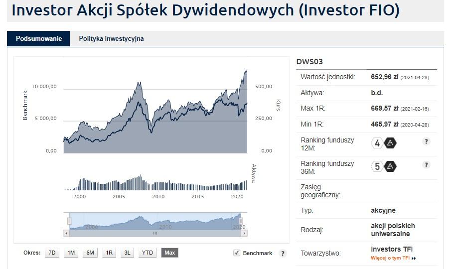 Sytuacja wbrew pozorom jest dość złożona. W opisie funduszu czytamy, że od 70 proc. do 100 proc. jego aktywów stanowią akcje oraz inne instrumenty oparte o akcje, takie jak prawa do akcji, prawa poboru, warranty subskrypcyjne i kwity depozytowe. Główną część portfela powinny stanowić akcje spółek dokonujących dystrybucji zysków wśród akcjonariuszy w formie dywidend lub wykupu akcji.